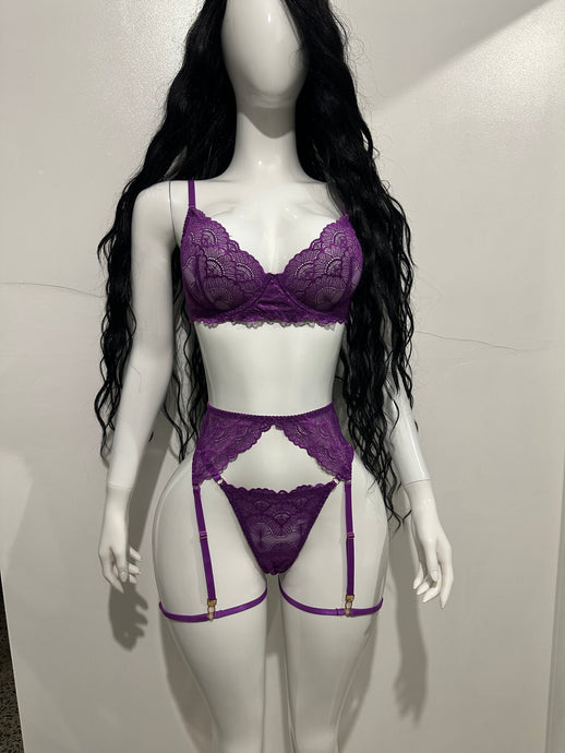 Amatista – Set de Encaje Púrpura con Liguero
