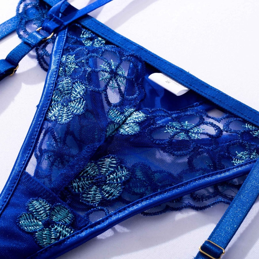 Topacio de Medianoche – Set de Encaje Azul con Liguero