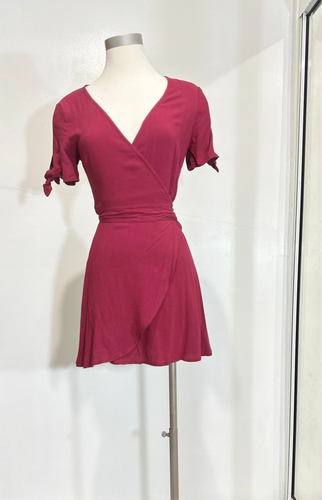 Vestido Cruzado Color Vino – Manga con Lazo y Corte Fluido